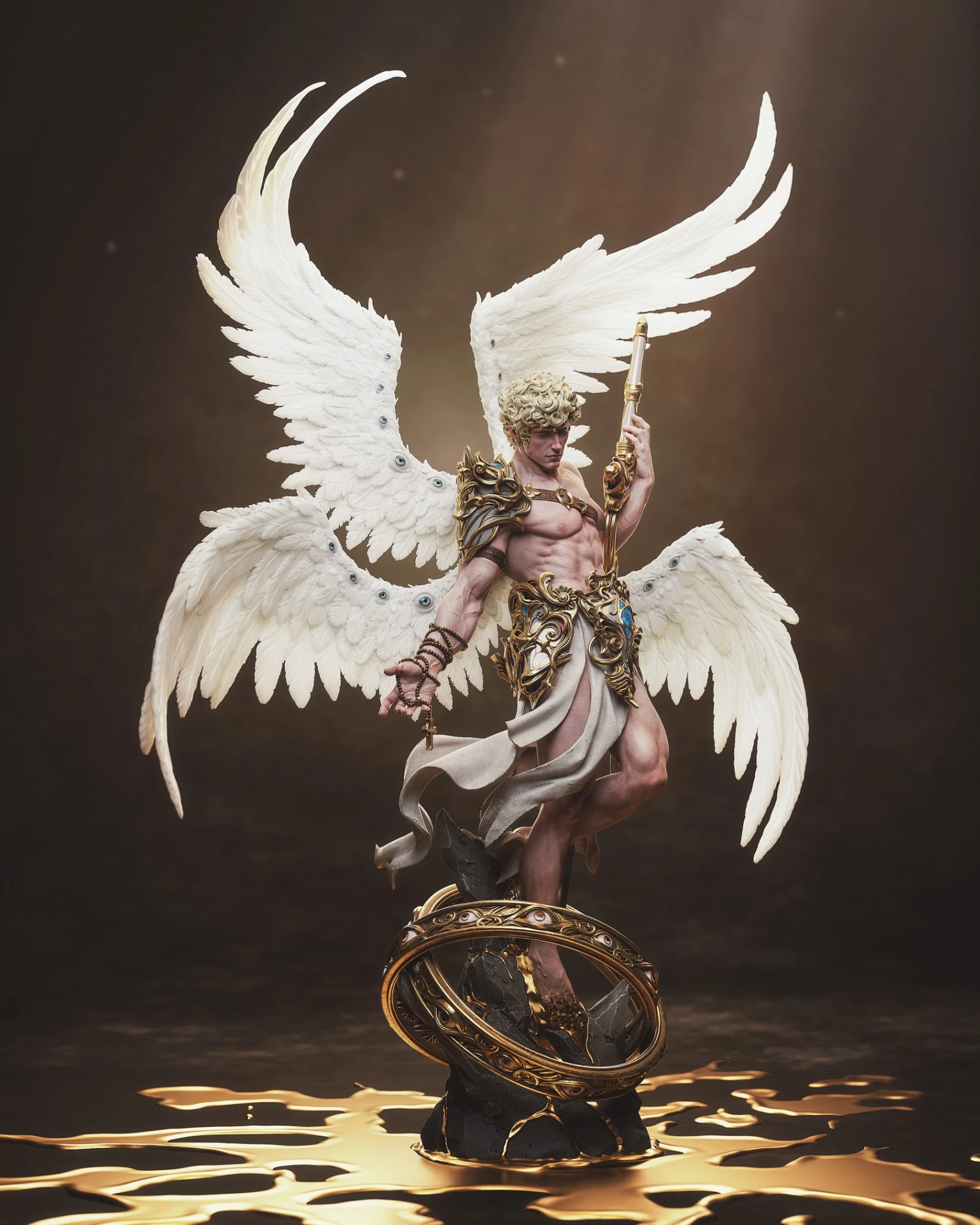Niesamowita wielka figura anioła Cheruba wykonana w technologii druku 3D 14K z żywicy foto polimerowej 14k.